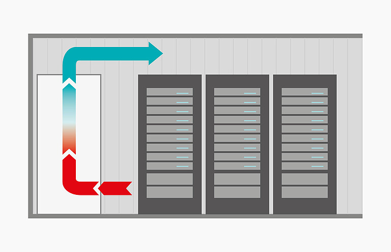 At low outside temperatures, outside air is used directly for cooling. The outside air is conveyed into the interior when the air damper is open. Energy-intensive compressor cooling is not needed when outside temperatures are low. This way, Free Cooling brings you huge potential savings.
