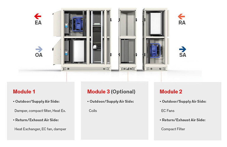 De serie ClimaPac-luchtbehandelingskasten biedt met haar luchtdebieten tot wel 160.000 m³/h een flexibele en modulair configureerbare oplossing voor de meest veeleisende projecten.